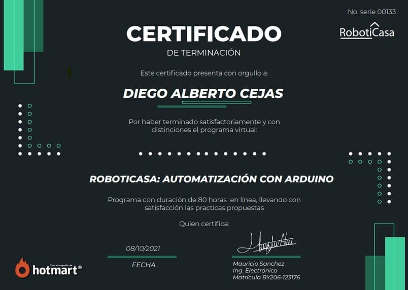 Deseas crear tu propio negocio exitoso de automatización y proyectos inteligentes. Té gustaría generar altos ingresos extras desde la comodidad de tu hogar. Ves videos en YouTube pensando aprender pero siempre te dejan con dudas o no te muestran todo, Quieres perfeccionar tu habilidad como electrónico o programador y pasar al siguiente nivel profesional y CERTIFICARTE.